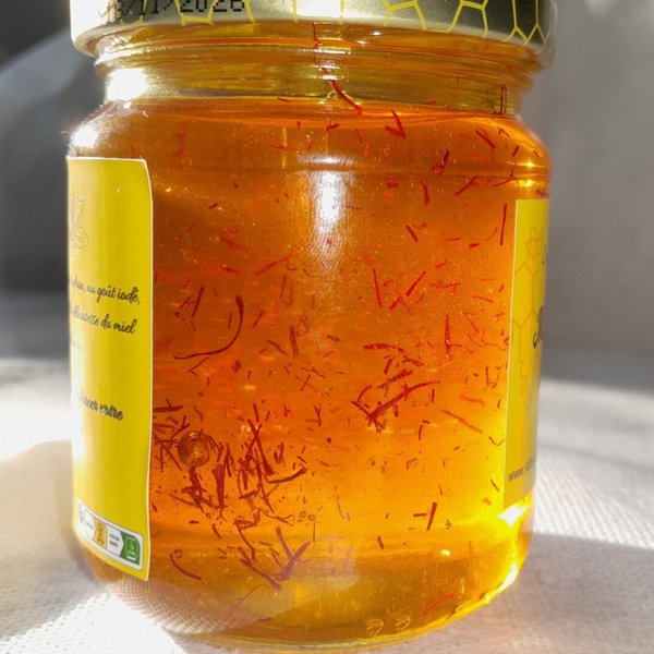 Ce miel d’acacia infusé au safran est bien plus qu’un délice : une alliance naturelle pour le plaisir et le bien-être.